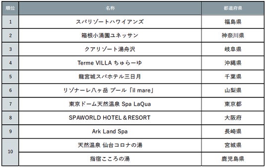 「じゃらん 一日遊べる温泉テーマパークランキング」