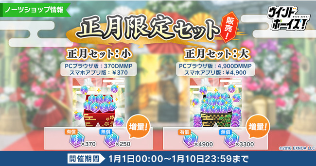 1月1日(土)より、ショップに期間限定で商品を追加しました。期間中1回限り、お得に「ノーツ」を購入することが出来ます。詳しくはゲーム内のお知らせをご確認ください。