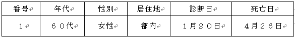 都内で新型コロナウイルスに感染した方が死亡されましたのでお知らせします。