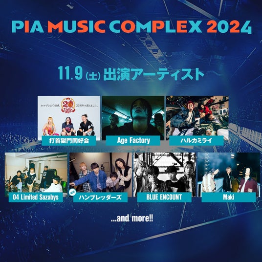 2024年11月9日(土)・10日(日)、横浜・ぴあアリーナMMにて「PIA MUSIC COMPLEX 2024」を開催。本日、第4弾出演アーティストを発表いたします。