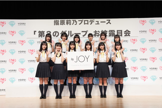 オーディションにより選ばれた「≒JOY」のメンバーは、逢田珠里依、天野香乃愛、市原愛弓、江角怜音、大信田美月、大西葵、高橋舞、福山萌叶、藤沢莉子、村山結香、山田杏佳、山野愛月の12名。指原はグループ名について、「メンバーと、これから応援してくださるファンの皆さんが出会ったときに、喜びだったり幸せだったり、そういう気持ちになってもらえたらいいなと思って、『≒JOY』というグループ名にしました。」と、新グループ名に込められた想いを熱く語った。