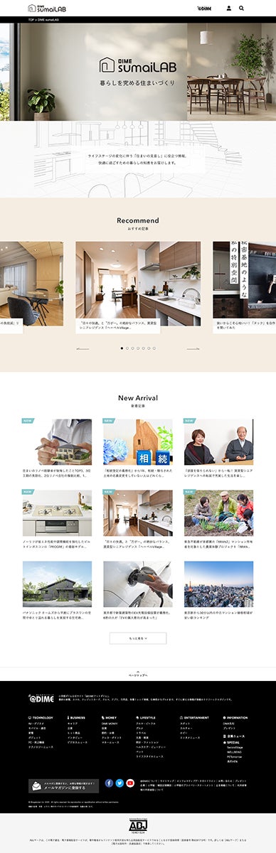 小学館が運営するビジネストレンドメディア『DIME』では、住まいの見直しに役立つ情報や、快適に過ごすための暮らしの知恵を発信するバーティカルメディア「DIME sumaiLAB」をWEBマガジン「@DIME」(http://dime.jp/)にてローンチしました。すでに発信しているビジネスパーソンの仕事や暮らしに役立つ情報とともに、強化してまいります。