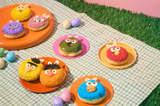バニードーナツがぎゅっと集合した姿は、セサミストリートの仲間たちが春を楽しんでいるようで心躍ります。