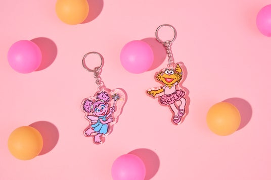 パステルカラーの背景に、パステルカラー調になったセサミストリートのキャラクターたちがマッチしたアクリルキーホルダー。