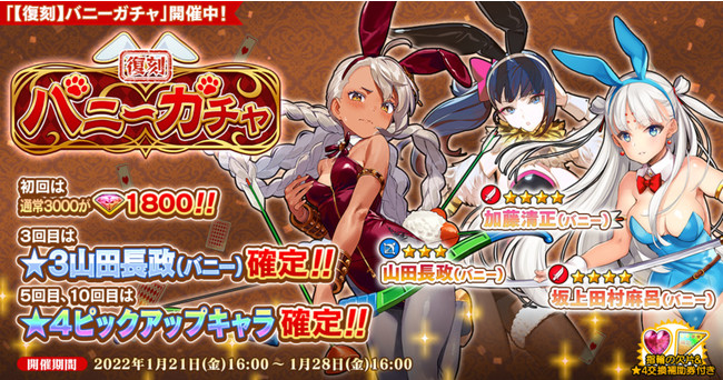 合同会社EXNOA(本社:東京都港区、CEO:村中 悠介、URL:https://games.dmm.com/)が運営するDMM GAMESは、2022年1月25日(火)メンテナンス後より、地域制圧型シミュレーションRPG『英雄*戦姫WW』の『大王夢中語ガチャ 夢食い』を開始することをお知らせいたします。
