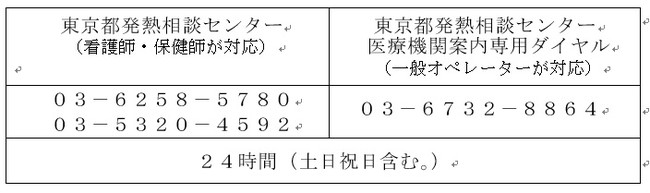 東京都発熱相談センター 医療機関案内専用ダイヤル