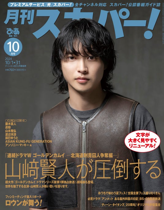 「連続ドラマW ゴールデンカムイ ―北海道刺青囚人争奪編―」主演の山崎賢人が表紙に登場!A4ワイド版にリニューアルしてさらに見やすくなった「月刊スカパー!」2024年10月号が9月24日(火)に発売!
