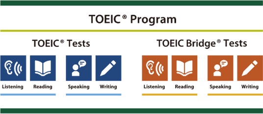 TOEIC(R) Listening & Reading Test、TOEIC(R) Speaking & Writing Tests、TOEIC Bridge(R) Listening & Reading Tests、TOEIC Bridge(R) Speaking & Writing Testsの総称。4つのテストを合わせたTOEIC(R) Programは世界160カ国、約14,000団体で実施されています。