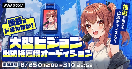 AWA株式会社(本社:東京都港区、代表取締役CEO:冨樫晃己)が運営する、サブスクリプション型(定額制)音楽ストリーミングサービス「AWA(アワ)」は、渋谷にある大型ビジョンへの出演権をかけたオーディションを開催いたします。