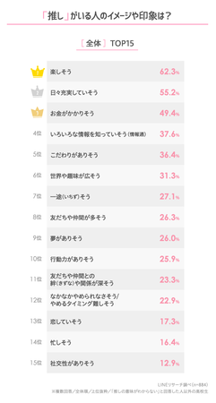 このたびLINEリサーチでは、日本全国の高校生を対象に、好きな人やキャラクターなどの推しがいるか、またその推しのジャンルや推すようになったきっかけなどについて調査しましたので、その結果をお知らせいたします。