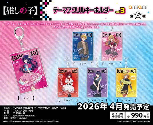 フィギュア&ホビー通販大手の「あみあみ」を運営する、大網株式会社(本社・東京都文京区)は、TVアニメ『【推しの子】』の「テーマB2タペストリー Vol.3」「テーマアクリルキーホルダー Vol.3」を、2026年4月予定で発売いたします。