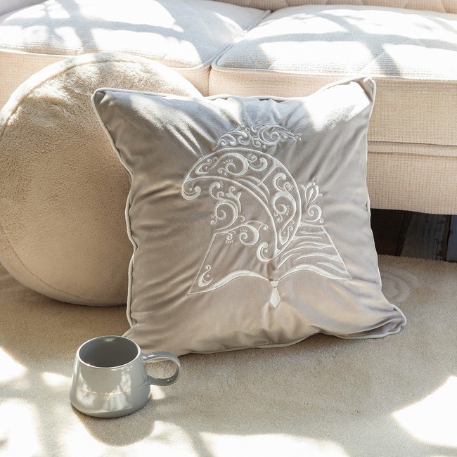 異能力「人間失格」、「スカーフ」等をイメージした刺繍をあしらったクッションカバー。ほど良い起毛感と微光沢な素材感が、お部屋をプチグレードアップしてくれます。裏側の織ネームもポイントです。