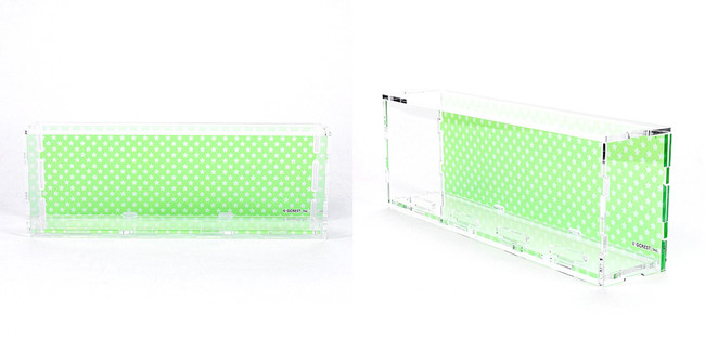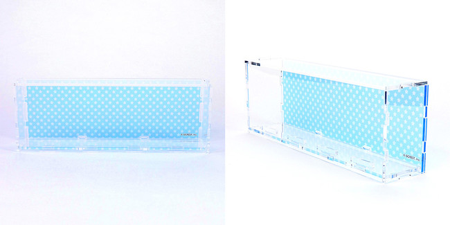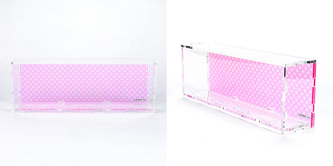 厚みのあるアクリルブロックの前面・背面の2層に印刷を施し、角やフチを研磨した、安全で手触りがよいアイテムです。