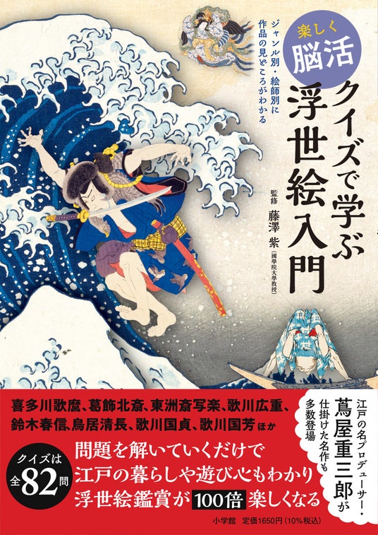 國學院大學文学部教授・国際浮世絵学会常任理事の藤澤紫さんを監修に迎え、作品をじっくり見るとヒントがあるものから、雑学やひらめきで解くものまで、クイズは全82問。版元、絵師、彫師、摺師たち匠の連携プレーが生んだ浮世絵版画の奥深さに唸りながら、この一冊を通して浮世絵の楽しみ方が広がること、必至です。