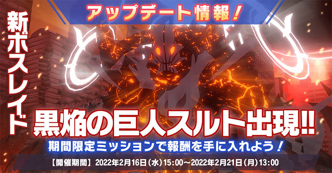 2月16日(水)より新たなボスレイド「黒焔の巨人 スルト」が登場しました!