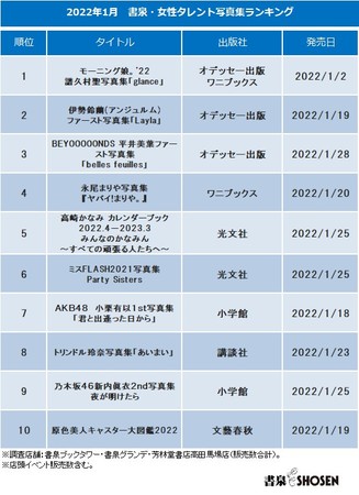<2022年1月 書泉・女性タレント写真集売上ランキング>