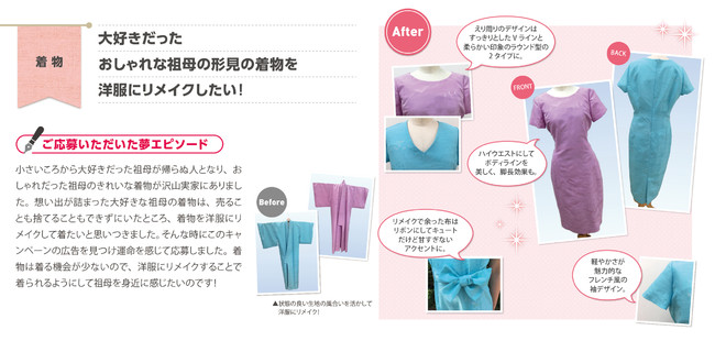 ・キャンペーン内容:【ドリーム賞】選考により、全国5名様のお直しの夢の実現をお手伝いいたします。