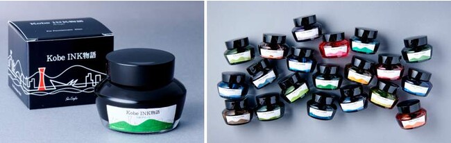 2007年から開発された「Kobe INK物語」は、阪神淡路大震災から復興した新しい神戸の街を色で表現したいという思いから生まれました。ファーストインクのカラーは、神戸の街から見える六甲山の山並みの色「六甲グリーン」。2023年9月現在は、132色にまで増えました。そして今回、神戸の街を愛する企業とのコラボとして、フェリシモ チョコレート ミュージアムの限定カラーが実現しました。