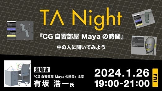 株式会社クリーク・アンド・リバー社(C&R社)は、1月26日(金)、テクニカルアーティスト(TA)の方やMayaを使用する3DCGデザイナー、ゲーム業界を目指す学生の方を対象に『TA Night「CG自習部屋 Mayaの時間」中の人に聞いてみよう』を開催します。