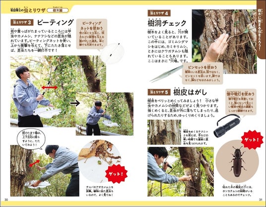 そこで、虫とりが大好きな子どもたちのために、楽しくて正しい虫とりの方法を指南する最新のガイドブックを作りました。ガイド役は、NHK Eテレなどでも活躍しているイケメン昆虫博士の牧田習さんが担当。牧田さんならではの視点と知見をフルに活用した、実践的で楽しい虫とりのハウツーを余すところなく、紹介しています。
