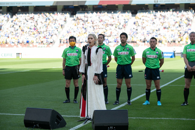 ジャパンラグビー リーグワンの初年度の決勝戦で国歌を独唱させていただくこと大変光栄に思っております。国立競技場の風をみなさまと共有できたこと、ピッチから見えた空の青さを忘れません。
