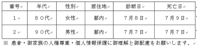 2022-07-14 東京都 新型コロナウイルスに関連した患者の死亡について Tweet ~新型コロナウイルスに関連した東京都からのお知らせ~ 都内で新型コロナウイルスに感染した方が死亡されましたのでお知らせします。 お亡くなりになった方のご冥福をお祈り申し上げます。 企業プレスリリース詳細へ PR TIMESトップへ 公式ツイッター Follow @Straightpress 最新情報をTwitterで受け取ろう! 公式フェイスブックページ 最新情報をFacebookで受け取ろう! 前の記事 一覧へ戻る 次の記事