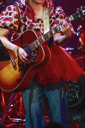 失恋ソングの「最後の彼女になりたかった」「さよなら恋人」を演奏するとメンバーがはけ、弾き語りコーナーへ。「君が帰った後には」をしっとりと爪弾く。今回のツアーについて“裏テーマでは、去年の8月でメジャーデビュー5周年を迎えたので、その感謝を伝えるツアーをやりたいなと思って。日本中なるべくたくさんの場所を回らせてもらいました。そういう節目とか記念のときに歌う曲を歌いたいと思います。これからもみんなの側で歌っていいですか?という曲です”と紹介したコレサワは、メジャーデビュー作『コレカラー』収録の「これから」を歌い上げる。アコースティックギターを力強く鳴らし真っ直ぐに歌を届ける彼女に、観客は熱い眼差しを向けていた。
