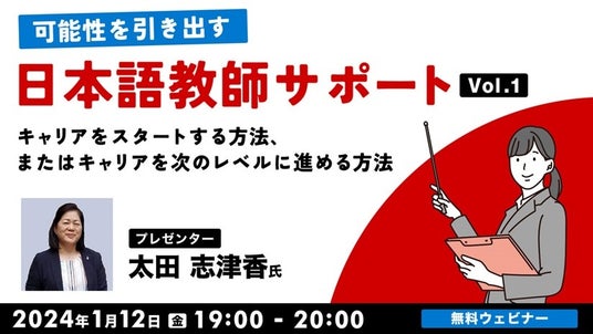 株式会社クリーク・アンド・リバー社は1月12日(金)、現役日本語教師の方や日本語教師の仕事を目指す方などを対象に、無料オンラインセミナー「可能性を引き出す:日本語教師サポート Vol.1 キャリアをスタートする方法、またはキャリアを次のレベルに進める方法」を開催します。