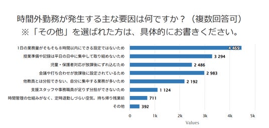 時間外勤務の最大の要因は「1日の業務量がそもそも8時間以内にできる設定ではないため」