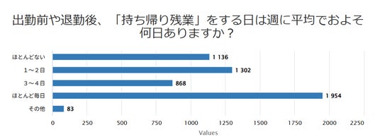 半数以上が週3日以上の持ち帰り残業をおこなっています。