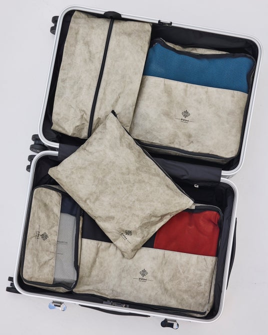 スーツケースをお買い上げいただいたお客様には、様々なアイテムを分けて収納できるオリジナルトラベルポーチ5点SETをプレゼントいたします。