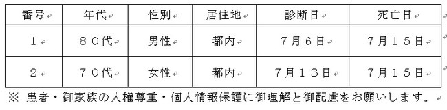 2022-07-17 東京都 新型コロナウイルスに関連した患者の死亡について Tweet ~新型コロナウイルスに関連した東京都からのお知らせ~ 都内で新型コロナウイルスに感染した方が死亡されましたのでお知らせします。 お亡くなりになった方のご冥福をお祈り申し上げます。 企業プレスリリース詳細へ PR TIMESトップへ 公式ツイッター Follow @Straightpress 最新情報をTwitterで受け取ろう! 公式フェイスブックページ 最新情報をFacebookで受け取ろう! 前の記事 一覧へ戻る 次の記事