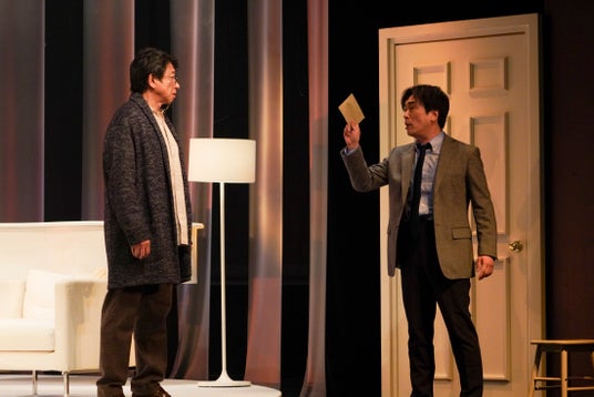 8月に上演された東京公演では、ノルウェーの孤島を舞台に、井上演じるノーベル賞作家のアベル・ズノルコと、関演じる新聞記者のエリック・ラルセンの会話劇を展開。ある秘密を巡って2人が互いを探り合う緊迫した駆け引きを軸にしながら、時に2人ならではのユーモラスな掛け合いを織り交ぜる場面も。そして、謎が謎を呼ぶ展開に観客は釘付け。毎公演終演と同時に会場は万雷の拍手に包まれていました。