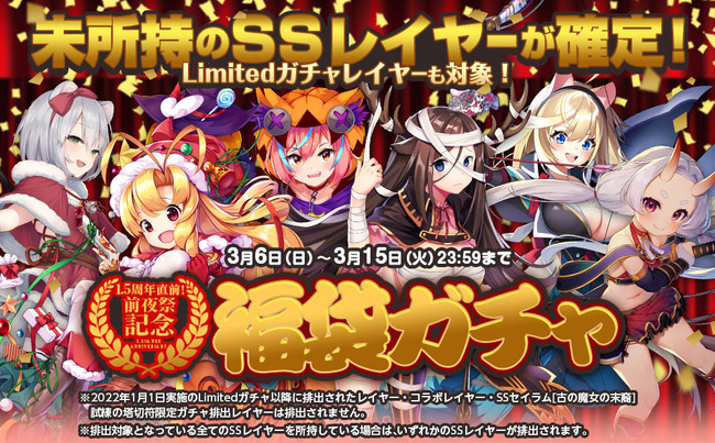 ▼1.5周年直前カウントダウン!SR以上確定無料10連ガチャ