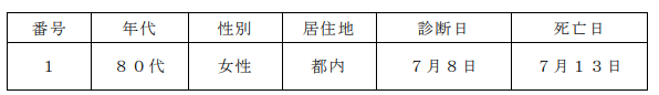都内で新型コロナウイルスに感染した方が死亡されましたのでお知らせします。