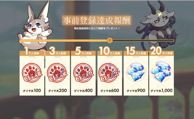 事前登録者数が10万人を突破いたしましたので、ゲーム開始時のプレゼントとして「ダイヤ ×1300個」が確定いたしました!