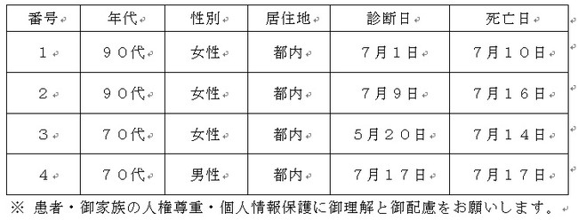 2022-07-21 東京都 新型コロナウイルスに関連した患者の死亡について Tweet ~新型コロナウイルスに関連した東京都からのお知らせ~ 都内で新型コロナウイルスに感染した方が死亡されましたのでお知らせします。 お亡くなりになった方のご冥福をお祈り申し上げます。 企業プレスリリース詳細へ PR TIMESトップへ 公式ツイッター Follow @Straightpress 最新情報をTwitterで受け取ろう! 公式フェイスブックページ 最新情報をFacebookで受け取ろう! 前の記事 一覧へ戻る 次の記事