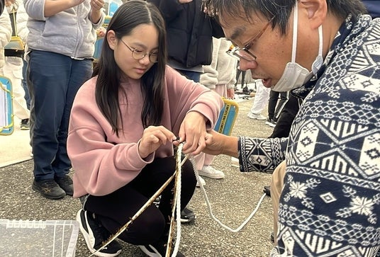 すべての海藻をロープに固定できたら、講師の中村氏が海藻を海に設置しました。この後は、海藻が海の栄養素でちゃんと成長できるのか見守ります。海藻の成長が気になり、設置場所に観察に行った子ども達もいたようです。