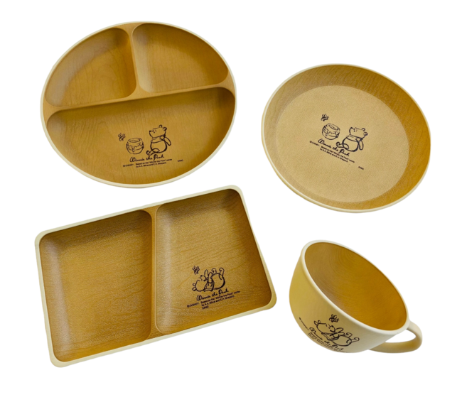 新商品は、かわいいプーさんのイラストと本物のような木目調がステキな食器シリーズ。