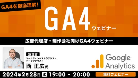 株式会社クリーク・アンド・リバー社(C&R社)は2月28日(水)、マーケティング担当の方々や、GA4を仕事に活用されている方々などを対象に、無料オンラインセミナー「GA4を徹底理解!広告代理店・制作会社向けGA4ウェビナー」を開催します。▼詳細・お申し込み
