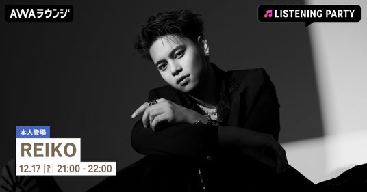 AWA株式会社(本社:東京都港区、代表取締役CEO:冨樫晃己)が運営する、サブスクリプション型(定額制)音楽ストリーミングサービス「AWA(アワ)」は、2025年12月17日(水) 21:00~22:00にて、無料で誰でも参加できるオンライン空間「ラウンジ」で、REIKOが音声とチャットで登場するリスニングパーティーを開催いたします。