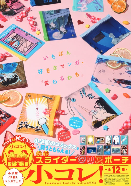 お好きな小学館のコミックスを1冊ご購入毎に、ノベルティの特製スライダークリアポーチが1個もらえます。全国の書店で「いちばん好きなマンガ、変わるかも。」な出会いをお届けいたします。