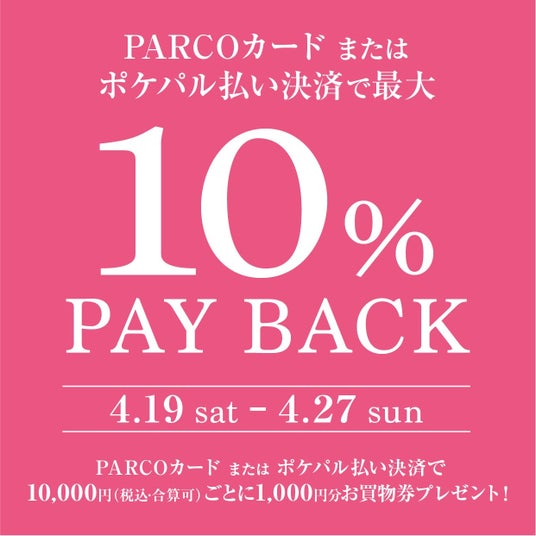 PARCOカードまたはポケパル払い決済で最大「10%PAY BACK」キャンペーンを行います。