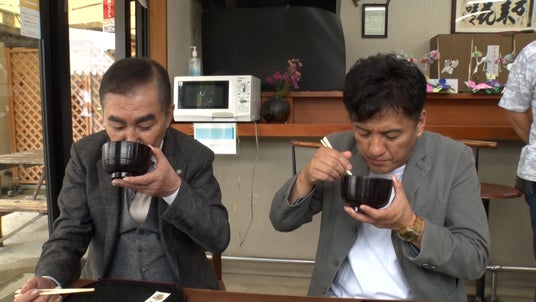 さらに、いばきたエリアの特産である龍王みそを手に取った文枝。その場で味噌汁を試食させてもらうと、美味しさに感動し勢いよく飲み干します。さらに「見山の郷」名物のジェラート「龍王みそ味」も試食し、大絶賛。「こういう所に老人ホームをつくってほしい」と、のどかな茨木北部への憧れを強めます。