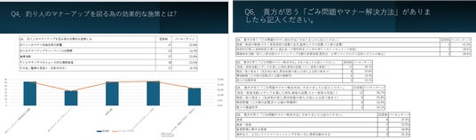 ■マナー向上・解決策として「テレビやラジオでのニュース的な情報発信 」「清掃活動 」「釣り人へのマ ナー啓発看板の設置」という視覚的な注意喚起や広範囲への啓発が効果的との考えが寄せられた。