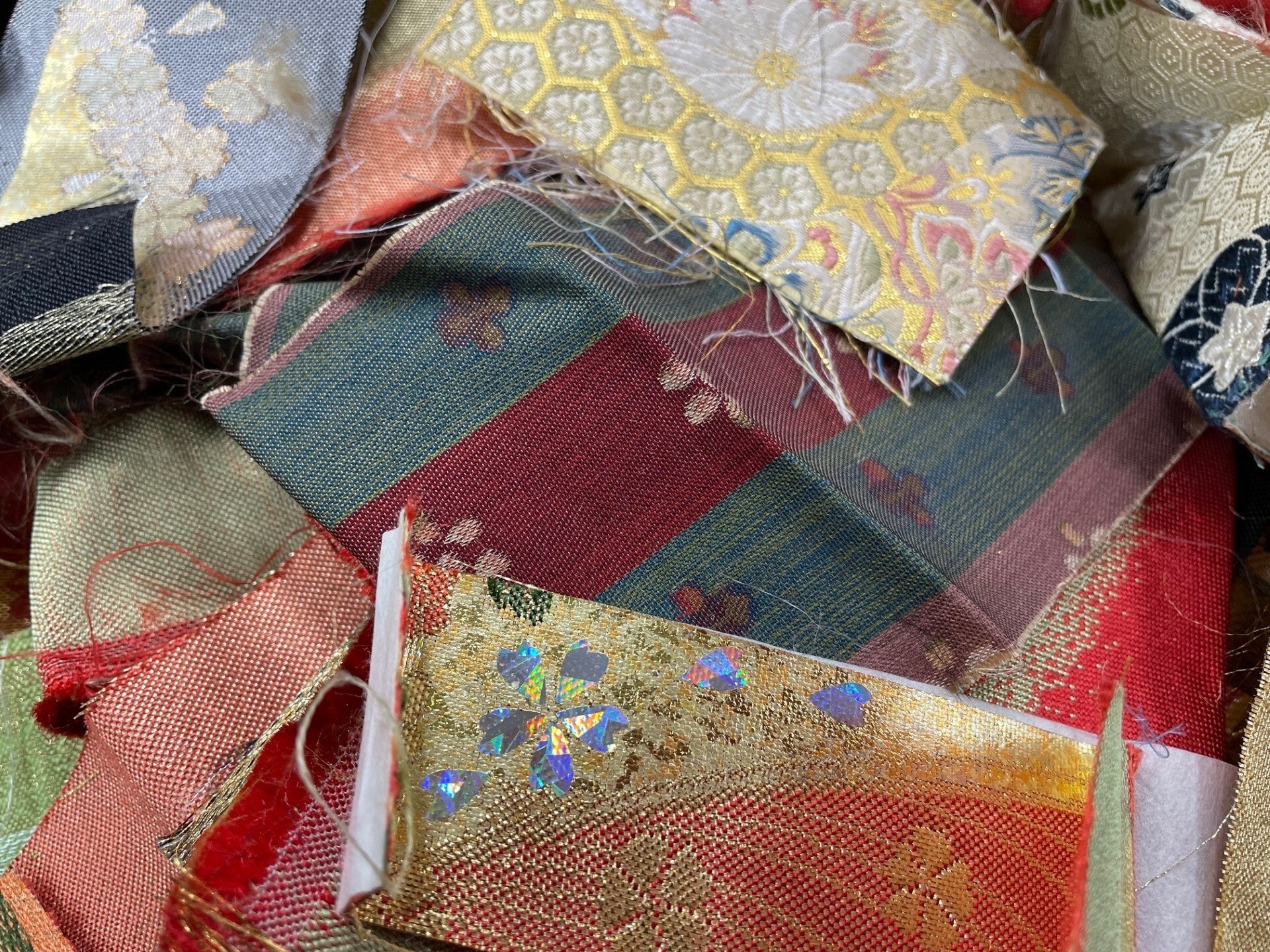 京の伝統工芸の美意識を感じるさまざまな色と模様の裂地を球状の土台に貼りつけ、オーナメントとしてリメイクいたします。