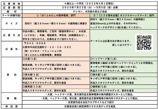 絵画コンクール「ぼくとわたしの阪神電車&【120周年企画】オリジナルヘッドマーク」の詳細は、次のとおりです。