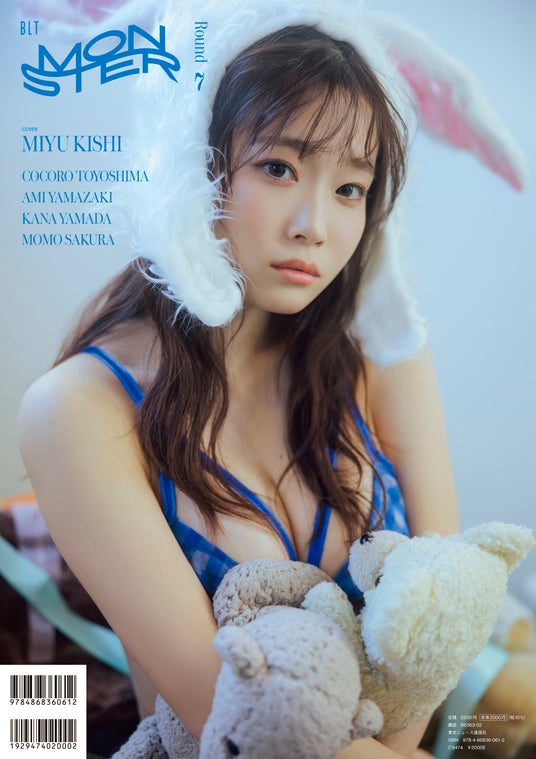 裏表紙を務めるのは、アイドルグループ、#ババババンビの岸みゆ。通常版では、ぬいぐるみを優しく抱きしめ、自身も愛らしいうさぎ耳をまとったメルヘンな一枚を採用。無垢さと遊び心が同居する世界観で、彼女のキュートな魅力を存分に引き出している。
