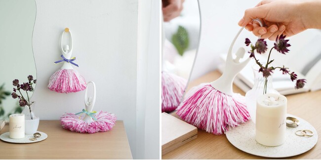邪気を呼び、厄をつけると言われるほこりやチリを払い、空間も心もすっきりきよめてほしいモップのセットです。毛を下にして自立する姿は、まるでバレリーナの姉妹のよう。掃除道具見えしないので、すぐ手に取れる所にスタンバイできます。