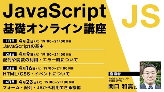 株式会社クリーク・アンド・リバー社(C&R社)は4月2日(火)から全4回で、Webデザイナーやコーダーの方、これからWebクリエイターをめざす方などを対象に、無料の「JavaScript基礎オンライン講座」を開催します。
